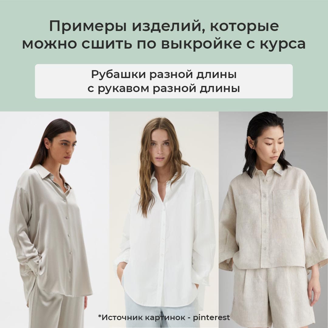 - Научитесь изменять выкройку рубашки на разные роста и размеры за пару секунд. Также быстро научитесь изменять прибавки, ширину рукава и манжет, длину изделия, спуск плеча, форму воротника.