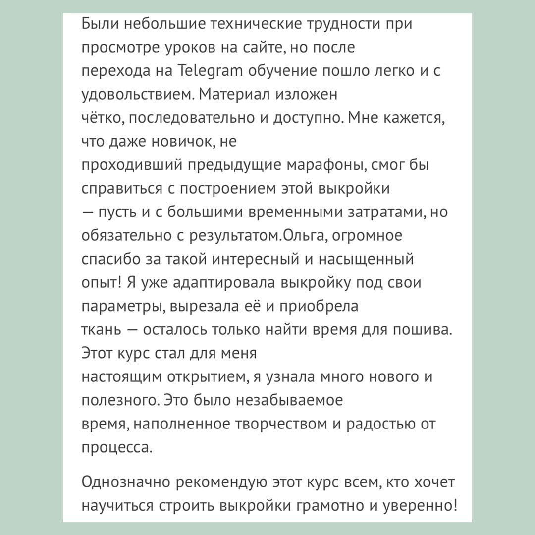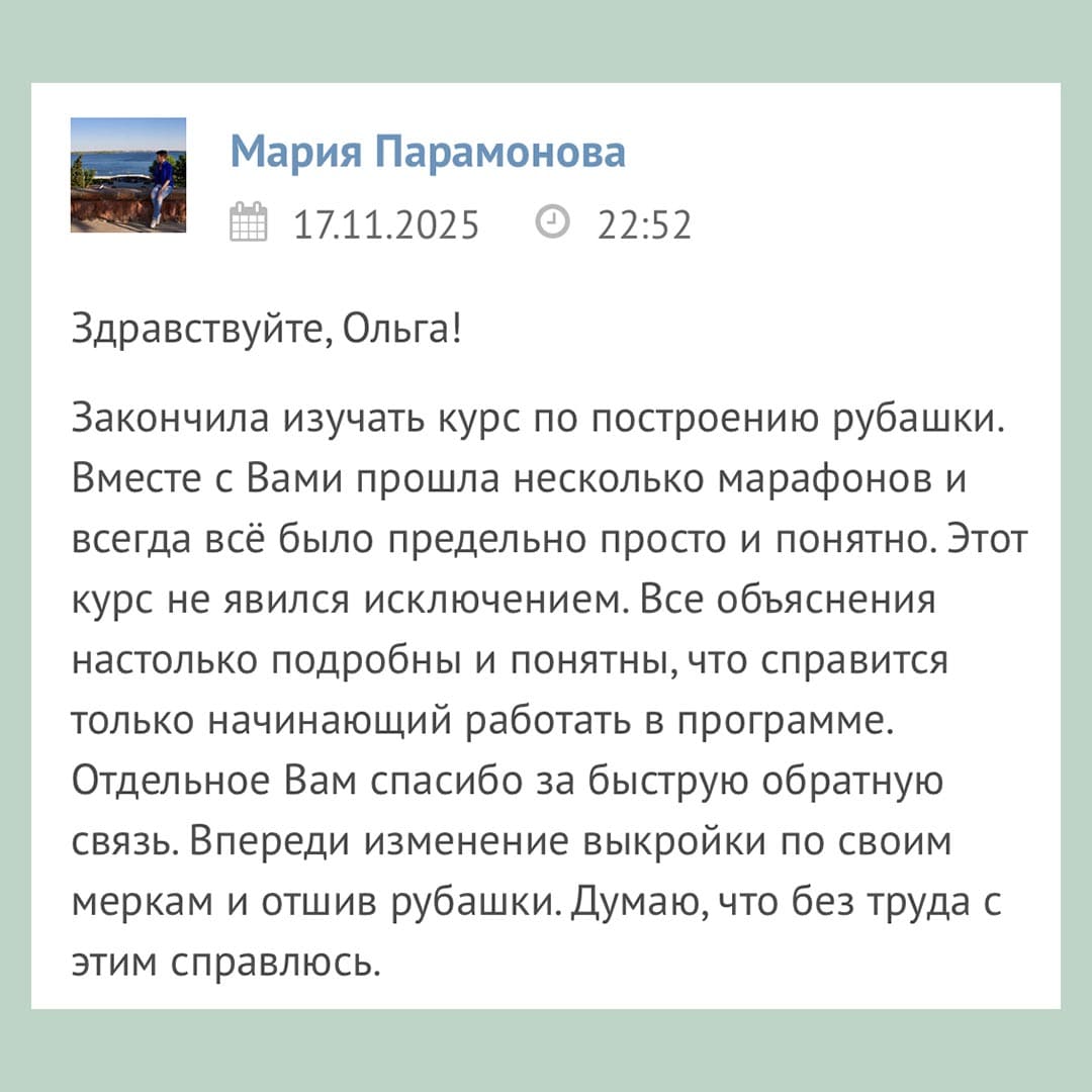 Отзывы о курсах и полезных материалах сайта МАСТЕРСКАЯ ПОРТНИХИ
